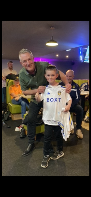 Margareta and me ended up in the hospitality tent together with a very weak Leeds supporter and a Sunderland supporter. That young man had really scrutinised everything about Sunderland and the FA Cup Final where they defeated us. As the undersigned has a traumatic memory, from the 1973 FA Cup Final, of this tragic loss , I am always a little cautious when commenting on this match. The Sunderland supporter forced me to remember the Leeds line-up for the game. Of the 11 regulars, I was right on 10. I forgot that Paul Madeley was left back and I was wrong about the substitute. I was approved! More fun was getting to shake hands with legend, Paul Reaney, during the evening.